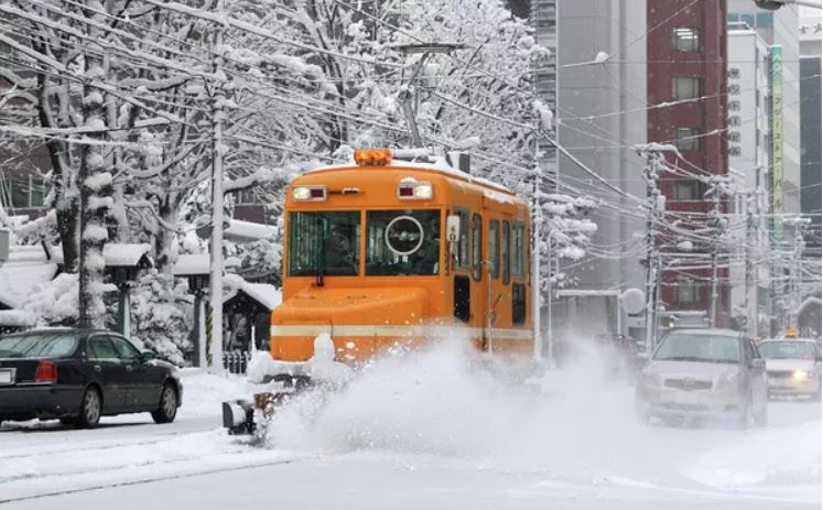 Xe dọn tuyết hoạt động trên đường phố Sapporo, Nhật Bản. CC BY-SA 3.0 / Tennen-Gas / Sapporo Tram