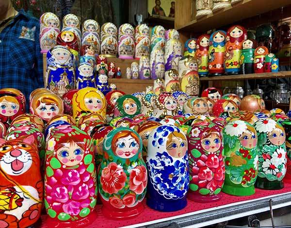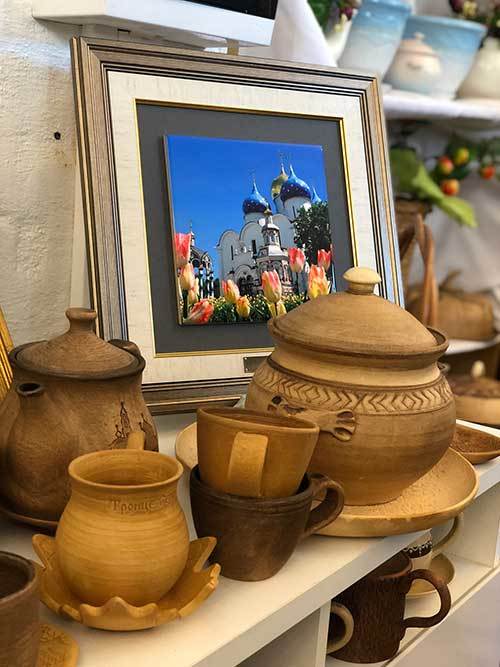 Trước khi vào tu viện, chúng tôi đi qua một khu bán hàng lưu niệm, ở đó dân địa phương bày bán nhiều hàng hóa, nhưng gây ấn tượng nhất vẫn là những búp bê Matryoska, sản phẩm truyền thống đầu tiên sản sinh ra tại vùng ngoại ô này.