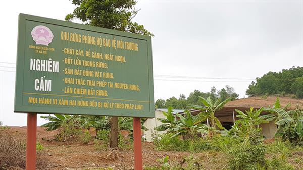 Những tấm biển này được dựng ở nhiều nơi nhưng rừng ở huyện Sóc Sơn vẫn bị xâm phạm nghiêm trọng. ẢNH LÊ QUÂN.