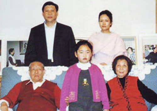 Xiao Muzi (chính giữa) cùng với ông nội Tập Trọng Huân (bên trái)