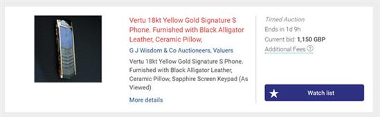 Điện thoại giá gần 20.000 USD của Vertu hiện được bán đấu giá ở mức 1.500 USD. Ảnh: TNW.