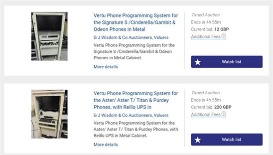 Những chiếc điện thọai Vertu trước đây có giá gần 20.000 USD hiện được bán đấu giá với giá khoảng 1.500 USD.