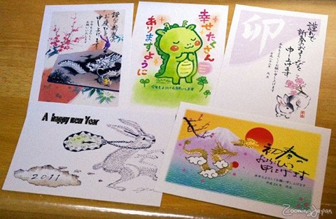 Một nét đặc sắc trong phong tục đón năm mới của người Nhật là tặng thiệp mừng năm mới. Người Nhật rất chịu khó viết thiệp chúc mừng gửi đến bạn bè, họ hàng. Ông Hideo Suzuki, công sứ Nhật Bản tại Việt Nam nói rằng ông đã từng viết đến hơn 200 thiệp chúc mừng năm mới. Thường thì ông bắt đầu viết từ giữa tháng 12 và mang đến bưu điện để gửi trước năm mới 3- 4 ngày. Bưu điện Nhật Bản sẽ giữ thiệp và chuyển phát đến người nhận đúng vào ngày mùng Một Tết.