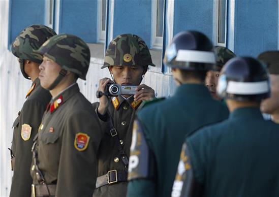 Binh sĩ Triều Tiên và Hàn Quốc tại Bàn Môn Điếm. (Ảnh: Reuters).
