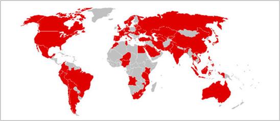 Bản đồ những nước đã bị tấn công bởi mã độc WannaCry. Ảnh: Escanav.