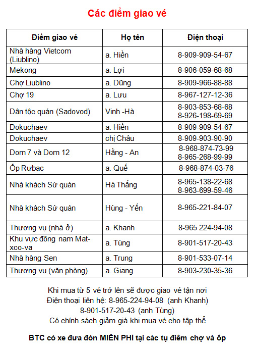 Ban tổ chức có bố trí xe Autobus đưa đón MIỄN PHÍ tại các tụ điểm chợ, ốp!