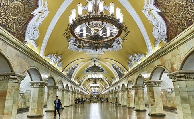 Theo Washington Post, hệ thống tàu điện ngầm ở thủ đô Moscow (Nga) được xem là một trong những công trình đẹp nhất thế giới. Di sản văn hóa ấn tượng nhất lịch sử nước Nga này được những kiến trúc sư giỏi nhất Liên Xô cũ xây dựng từ năm 1933.