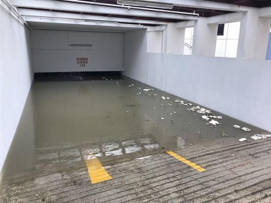 Một hầm để xe bị ngập. (Ảnh: SCMP)