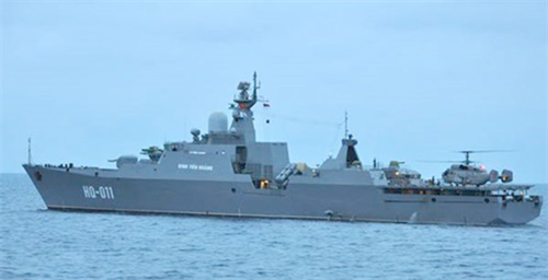 Hai chiến hạm lớp Gepard 3.9 đầu tiên Việt Nam đặt mua từ Nga, chiếc HQ-011 Đinh Tiên Hoàng và HQ-012 Lý Thái Tổ đã phục vụ trong lực lượng hải quân. Hai chiếc Gepard 3.9 kế tiếp đang được đóng tại Tatarstan, Nga, có khả năng săn ngầm - Ảnh: Mai Thanh Hải