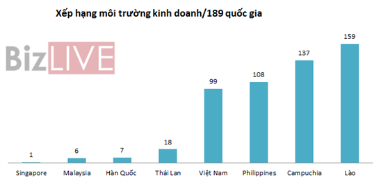 Xếp hạng về môi trường kinh doanh, Việt Nam hiện giữ vị trí thứ 99/189 quốc gia và vùng lãnh thổ, đây cũng là vị trí thấp nhất của Việt Nam kể từ 2006 (Năm 2006 xếp thứ 104).