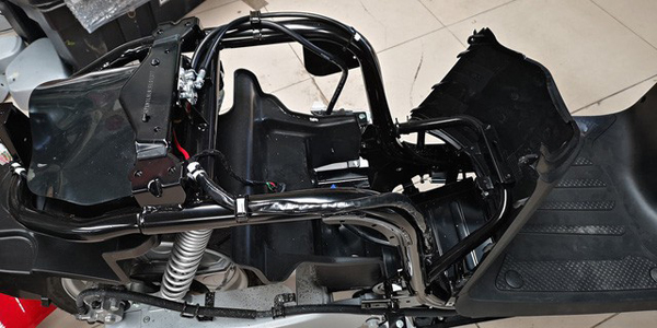 Phần khớp nối vị trí để chân người ngồi sau cũng được hàn cẩn thận vào khung xe.