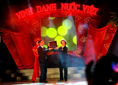 Nhạc sĩ Nguyễn Lân Tuất (bên phải) trong lễ Vinh danh đất Việt 2005