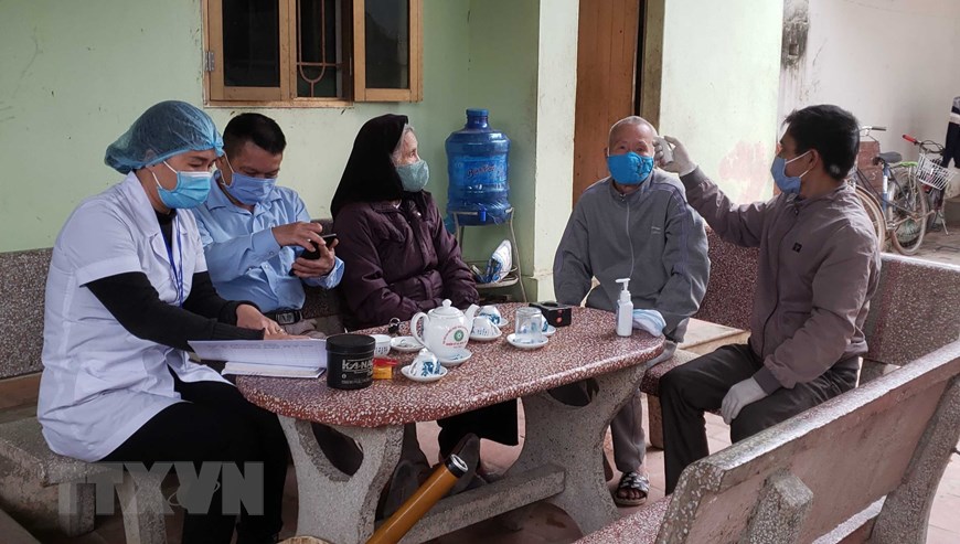 Người dân thôn Lương Câu được giám sát sức khỏe tại nhà. (Ảnh: Hoàng Hùng/TTXVN)