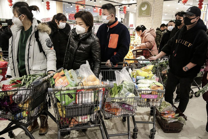 Người dân Trung Quốc đi siêu thị trong lúc dịch bệnh bùng nổ. Ảnh: Getty Image.