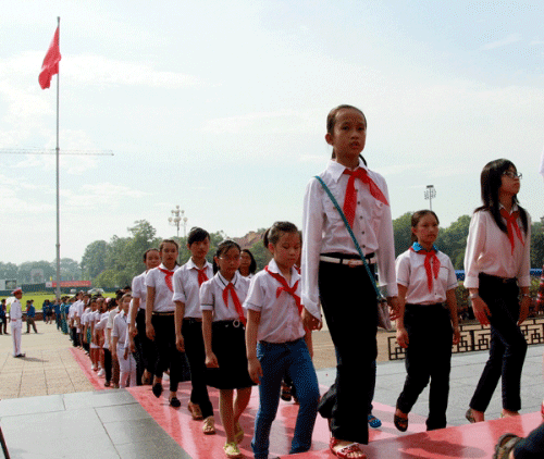 Các dũng sĩ vào lăng viếng Bác sáng 15/5 tại Hà Nội. Ảnh: Tiền Phong