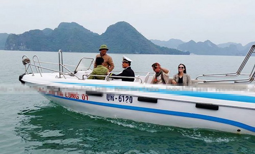 Cặp sao Hollywood mặc giản dị và rất thân thiện với mọi người khi đi chơi trên vịnh Hạ Long.