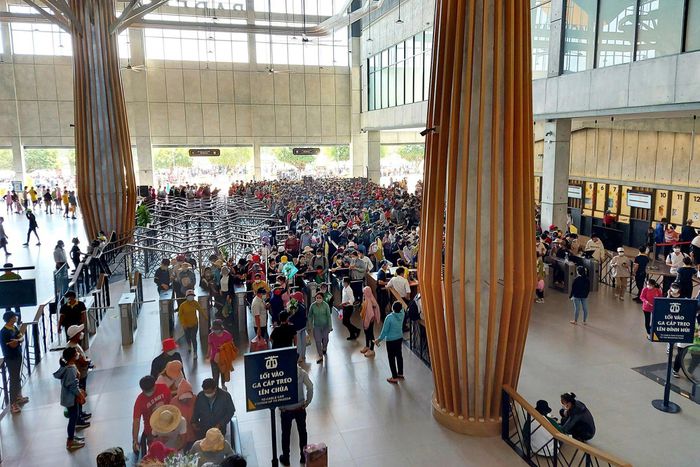 Giữa trưa, hòa trong dòng người tấp nập, đông đúc tại ga cáp treo lên đỉnh núi, Thanh Vịnh được thông báo phải chờ thêm 1-2 tiếng đồng hồ mới mua được vé với giá 220.000 đồng/khứ hồi/người.