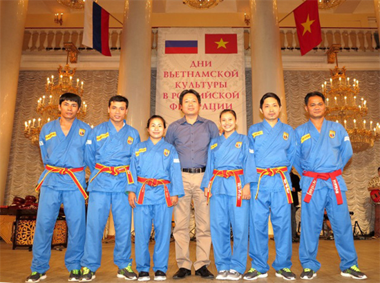Trong màu áo bà ba truyền thống của Nam bộ, 6 võ sĩ vovinam gồm Kim Thùy, Bích Phượng, Văn Cường, Bình Định, Khắc Nguyên và Trần Thế Thường đã cống hiến cho khán giả Nga và đại diện nhiều cơ quan ngoại giao tại Nga cùng đông đảo người Việt đang sinh sống làm việc tại Nga.