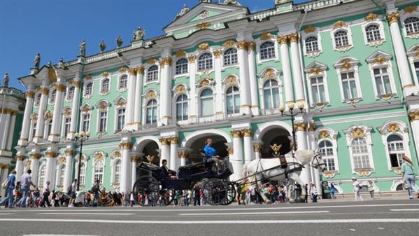 Tác nghiệp ở Cung điện Mùa Đông - nơi 100 năm trước lực lượng cách mạng do Đảng Bolshevik lãnh đạo đã lật đổ chính phủ tư sản lâm thời.