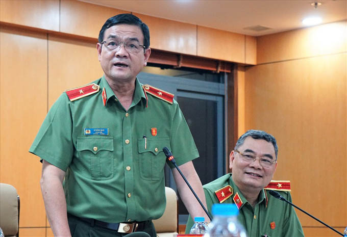 Trung tướng Trần Quốc Tỏ, Thứ trưởng Bộ Công an chủ trì buổi họp báo. Ảnh: Anh Tú