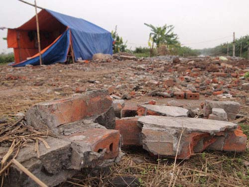 Ngôi nhà 2 tầng của gia đình ông Đoàn Văn Vươn đã bị phá huỷ hoàn toàn trong vụ cưỡng chế trái luật