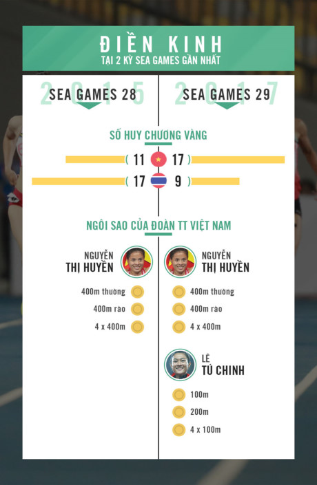 Tương quan giữa điền kinh Thái Lan và Việt Nam thay đổi lớn chỉ sau 1 kỳ SEA Games. Đồ Họa: Trí Mai