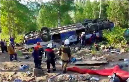Ít nhất 12 hành khách đã thiệt mạng và 39 người khác bị thương sau khi chiếc xe buýt chở những người hành hương bất ngờ lật úp và lao xuống vực sâu 30m ở vùng Transbaikal (Nga).