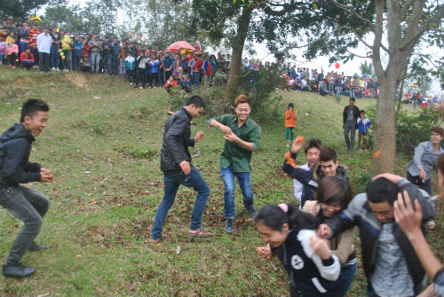 Đấy chính là lý do hàng năm tại phiên chợ này phải có màn xô xát, choảng nhau giữa các nhóm thanh niên làng thì chợ mới thực sự có ý nghĩa. Khi chợ bắt đầu khai hội, từng tốp thanh niên cả nam lẫn nữ của làng này, tập trung thành từng nhóm, trên tay cầm những túi cà chua, trứng thối ném vào những tốp thanh niên của làng khác.