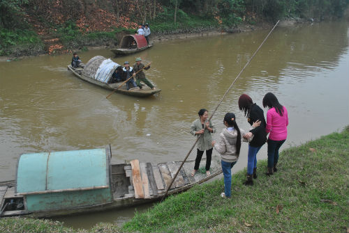 Chợ Chuộng (ở xóm Giang, xã Đông Hoàng, Đông Sơn, Thanh Hóa), cạnh sông Hoàng. Từ sáng sớm, thuyền từ các nơi đã tấp nập đổ về.
