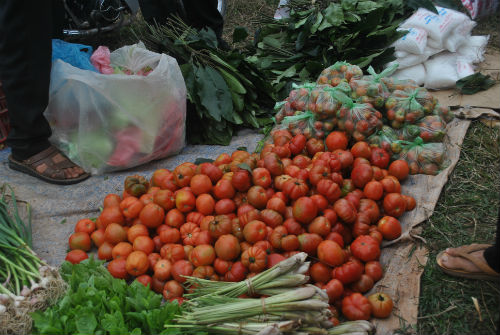 Anh Thanh, một người bán hàng tại đây cho biết, lượng hàng bán ra rất chạy, chủ yếu là cà chua. Theo đó, cà chua có giá từ 10.000-15.000 đồng/túi/kg.