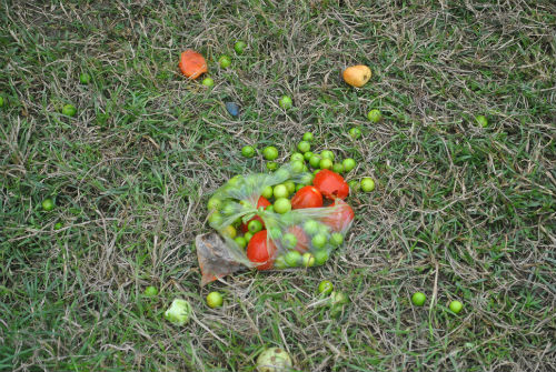 Một túi “vũ khí” đang bị bỏ rơi dưới đất.