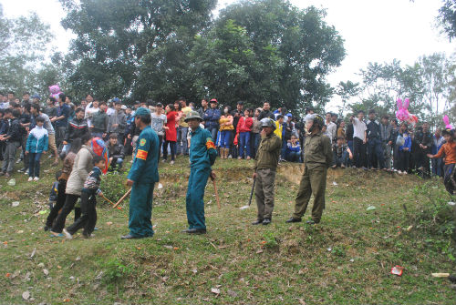 Lực lượng công an xã làm việc rất tích cực để bảo vệ an ninh lễ hội.