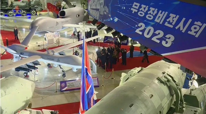 Video hai UAV và vũ khí mới được Triều Tiên phát tại triển lãm quốc phòng hàng năm được Triều Tiên trình chiếu tại triển lãm.