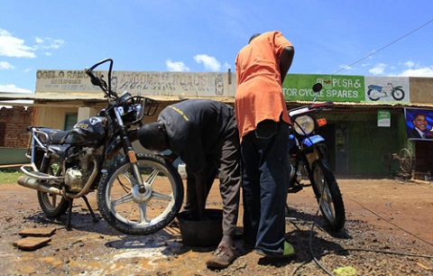 Cuộc sống bình dị tại làng Kogelo khi người dân rửa xe tại địa điểm gần với trung tâm thương mại.