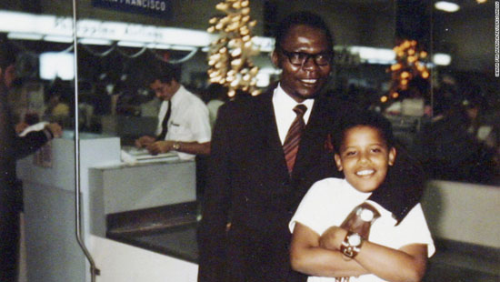 Bố của Tổng thống, ông Barack Hussein Obama, Sr. chụp chung với con trai trong một bức ảnh gia đình vào những năm 1960. Ông Barack Hussein Obama Sr. là chuyên viên kinh tế cấp cao của chính phủ Kenya, đã tốt nghiệp đại học Hawaii và Harvard. Khi sang Mỹ học tập, ông đã gặp bà Ann Dunham. Sau khi kết quả tình yêu của họ - Obama “con” được sinh ra, ông chia tay với vợ và trở lại Kenya. Tuy không sống cùng con song Obama Sr. rất chăm chút việc học hành, giáo dục cho con cái, thậm chí tất cả điểm số trên lớp của Tổng thống Obama đều được ông nắm rõ. Năm 1982, ông Obama Sr. thiệt mạng trong một vụ tai nạn giao thông tại Nairobe.