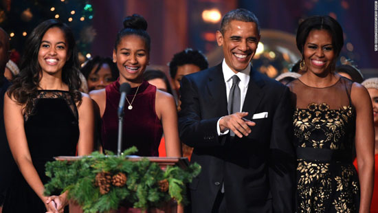 Gia đình 4 người gồm vợ và 2 con gái của Tổng thống Barack Obama.