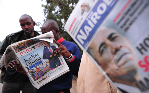 Người dân Kenya theo dõi tin tức về chuyến thăm của Tổng thống Mỹ Barack Obama. Ảnh: AFP/TTXVN