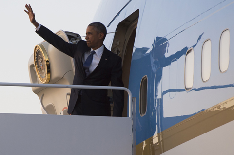 Tổng thống Barack Obama tại căn cứ không quân Andrews ở Maryland trước chuyến công du. Ảnh: AFP/TTXVN
