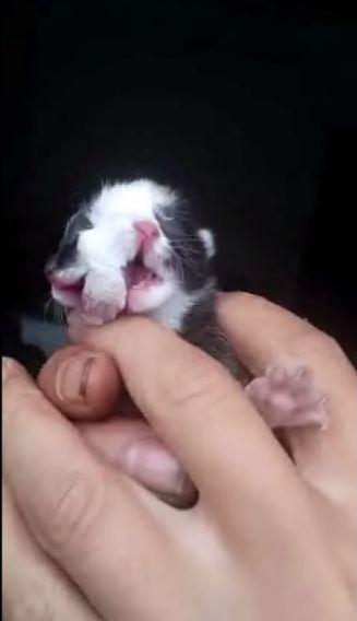 Theo đó, chú mèo kỳ dị này có hai miệng, hai mũi và bốn mắt. Trong video, chú mèo kêu “meo meo” khi nằm trong lòng bàn tay người.